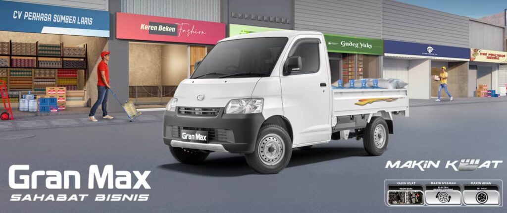 GRAN MAX PICK UP hadir dengan dashboard yang lebih modern dan terlihat semakin elegan. Didesain untuk menjadi Sahabat Bisnis, GRAN MAX PICK UP semakin siap menemani Sahabat dengan ruang lebih luas untuk 3 orang, hingga desain terbaru door arm rest dan cup holder untuk memudahkan Sahabat dalam perjalanan bisnis.